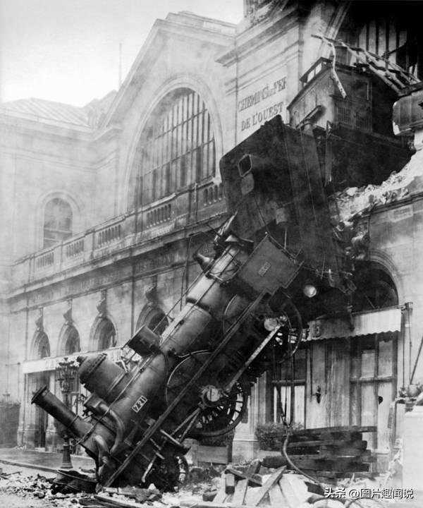 02:1895年10月22日,一列火车在进入巴黎蒙帕纳斯车站的速度过快,在撞穿车站墙壁并撞到下面的街道之前都未能将车刹住,这是事故现场。