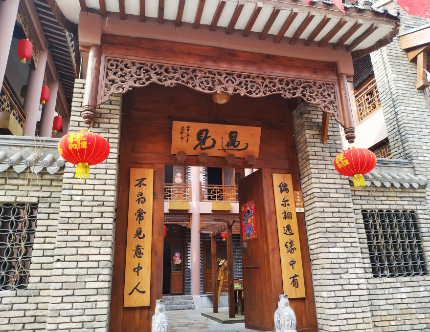 古镇广场沿台阶而上,便是统一样式的灰墙灰瓦的仿古房屋,但是都有一个特别文艺的名字,后来才知道这里便是古镇内的住宿客栈,价格也大都不便宜,大都500多一晚。房间内的设施与环境却让人觉得这里真的与城市不一样。